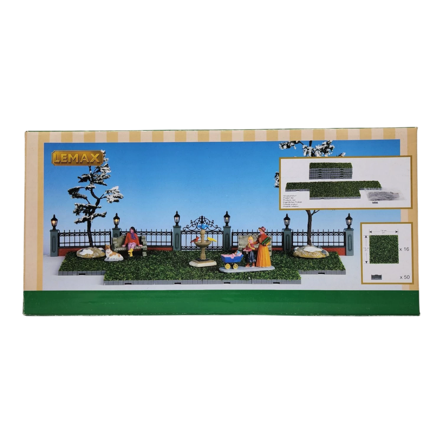 The elaborate grid patterns displayed on the packaging make planning your park design simple and fun, allowing you to mix and match the pieces to create your ideal scene. Imagine families enjoying leisurely strolls, children playing by the fountain, and friends gathering around beautifully designed benches. The detailed greenery and elegant fencing from the accompanying images complement the overall aesthetic, making your village feel warm and inviting. While this set provides all essential components for a lovely park environment, the endless possibilities for adding your personal touch with figurines, decorations, and additional accessories mean you can capture the heartwarming spirit and joy of the holiday season!
