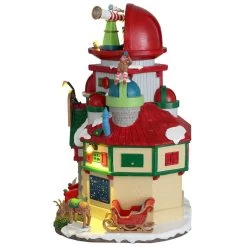 Nancy’s Christmas Boutique is a fantastical Christmas shop. The main portion of the building is shaped and decorated like a Christmas tree, and the tiered sides of the building are shaped like Christmas gifts. Through the lighted front window, you can see a friendly critter sitting on the windowsill. A nutcracker and many wrapped gifts sit outside the building, waiting to be taken home for Christmas.