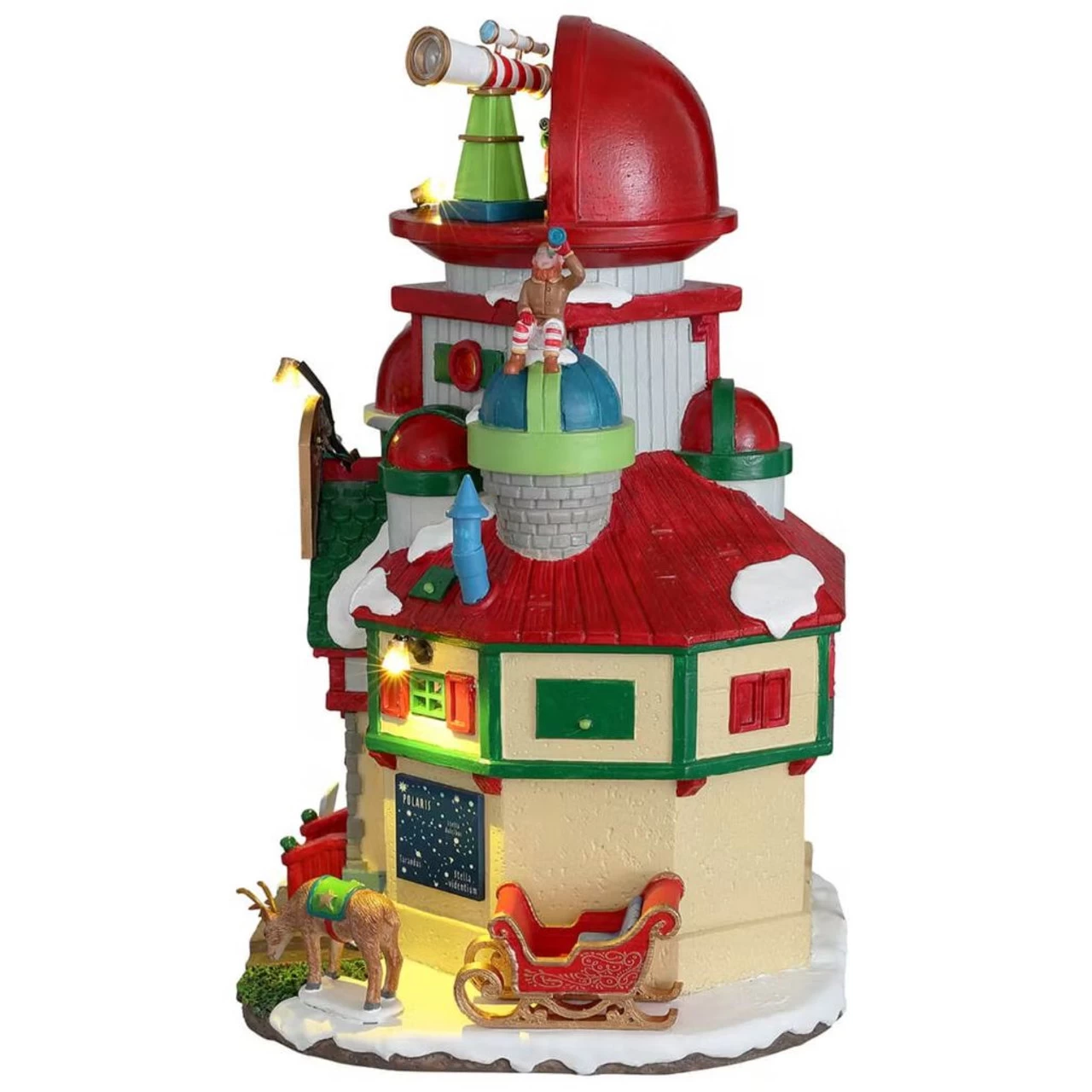 For a chance to see what is far, far beyond Santa’s Wonderland, grab a spot with a telescope at Santa’s Stratospheric Observatory. Santa himself is sitting on the roof, staring up into the amazing night sky. Perhaps he’s planning his route? Who knows, if you happen to be here on Christmas Eve, you might just see him in on sleigh along with all the sparkling constellations! The unit lights up to provide a wonderful atmosphere.