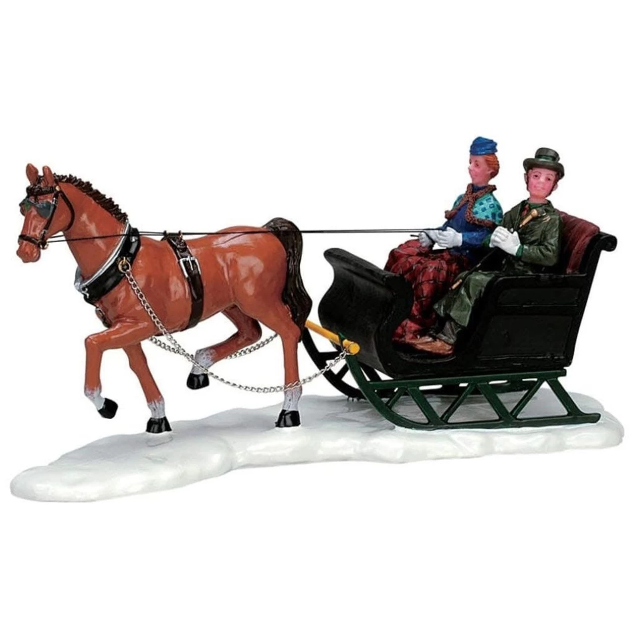 This couple is enjoying a peaceful sleigh ride in their horse drawn carriage.Â